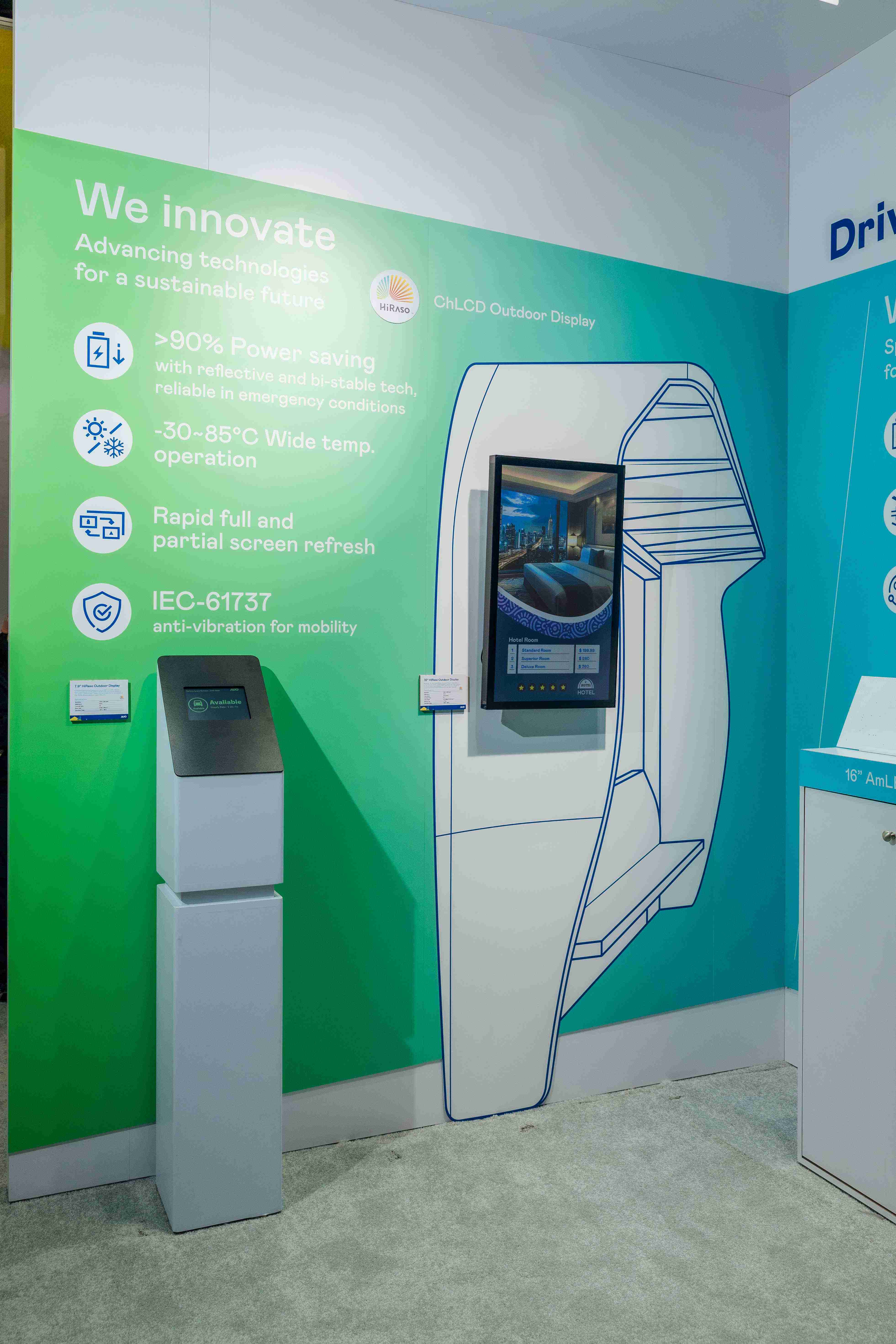 HiRaso胆固醇液晶显示器运用反射环境光线的方式,,,呈现影像显示时零耗能的环保省电诉求,,光线愈强愈能呈现绝佳的色彩饱和度及显示效果,,,同时在摄氏-30度至85度间宽温的使用优势,,,,为户外电子看板的新首选。。