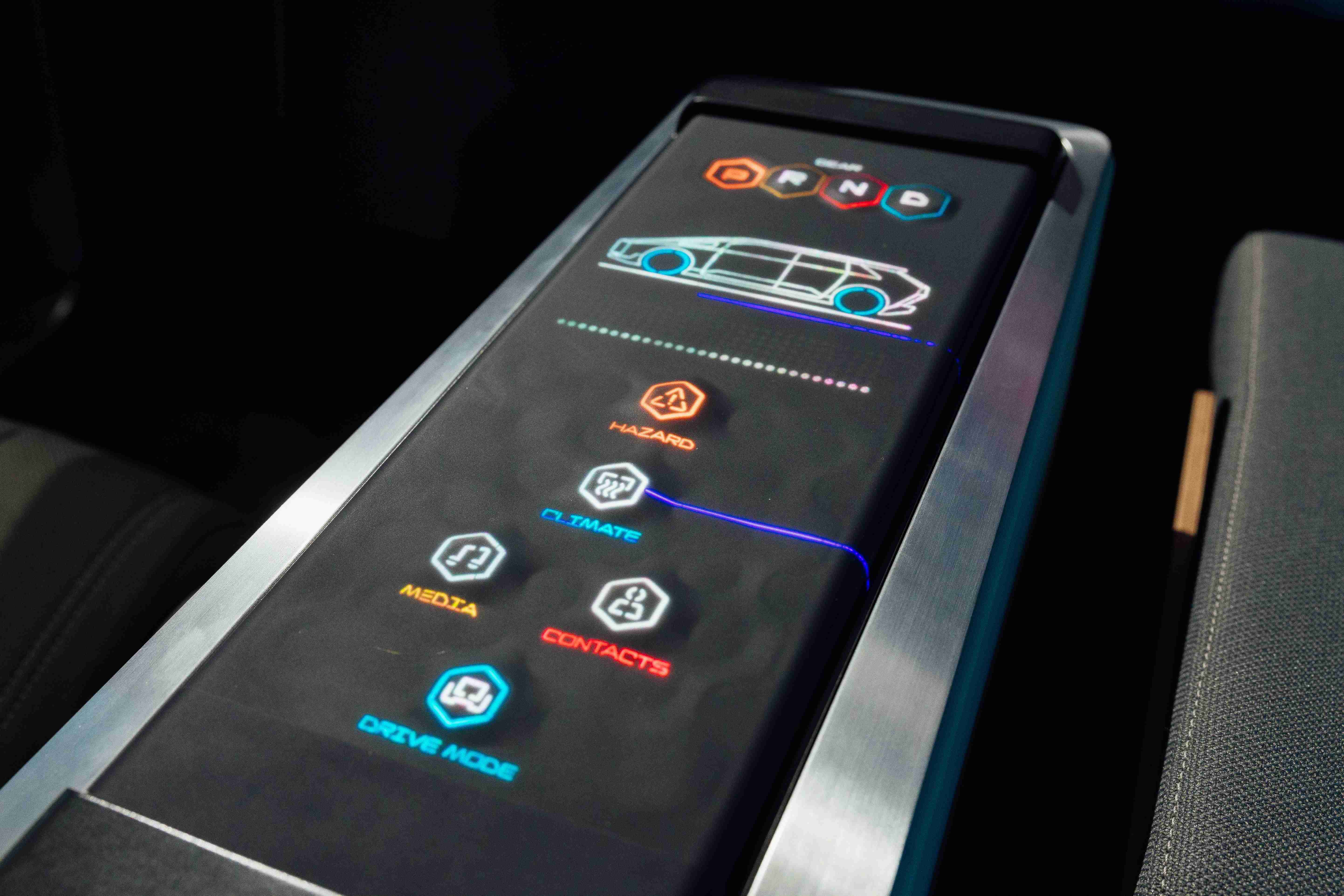 多变形态中控显示(Morphing Center Control)拥有动态变化的表面,,,平时常态显示车辆功能,,,进一步操作时,,,,则会隆起成为3D 按钮,,,,并在触控时以震动回馈,,,,以精细的操作开创人机互动新境界。。。。 ![]()